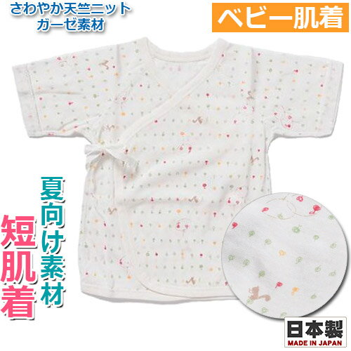【メール便送料無料】短肌着 リンゴリス柄/夏向け素材/天竺ニットガーゼ/50・60cm/新生児・約3ヶ月/日本製【シンク ビー】