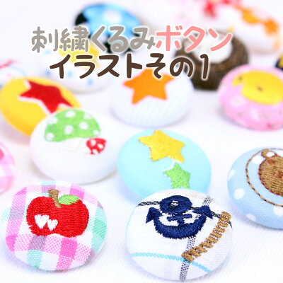【10%off】刺繍くるみボタン『イラストその1』入園 入学 準備 マイマーク バッグ 袋 幼稚園 保育園 小学校 日本製 男の子 女の子 帽子 スモック ボタン ハンドメイド